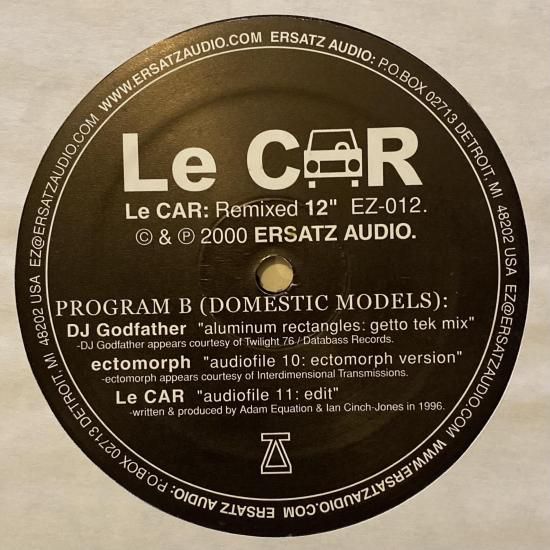 Adam Lee Miller, Ian R. ClarkによるDetroitのElectro Duo "Le Car"のトラックのリミックスEP。G.D. Luxxe、EDMX、DJ Godfather、EctomorphによるリミックスとLe CarのオリジナルAudiofile11の5 Cuts収録。メンバーのAdam Lee MillerのレーベルErsatz Audioからの2000年リリース。